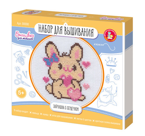 Вышивка "Зайчишка с сердечком" (с пяльцами) 05621