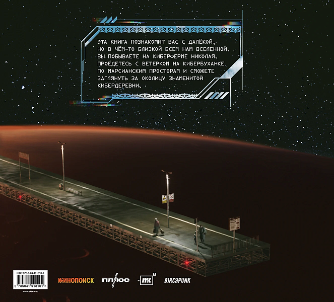 Стань ближе к полюбившимся героям и узнай, как сложились их образы. Мрачный Плутонск-13 или шумный Сатурнский рынок, где можно купить все, что угодно, — каждая локация вселенной «Кибердеревни» поражает своей узнаваемостью и в то же время фантастичностью. Большой удобный формат и яркие цветные страницы дают возможность разглядеть все детали не только у дороги космопоезда, но и у хозяйственной робота-доярки Глаши. А обаятельный Червик не оставит равнодушным ни земных детей, ни марсианских!
