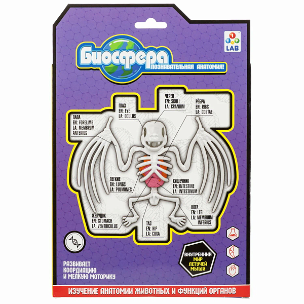 Набор для опытов Биосфера Летучая мышь от бренда 1TOY – это познавательная анатомия для детей в формате понятной и увлекательной игры.