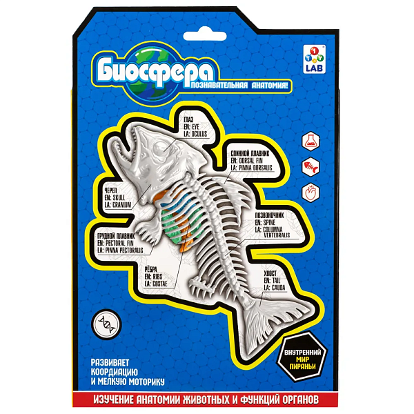 Набор для опытов Биосфера Пиранья от бренда 1TOY – это познавательная анатомия для детей в формате понятной и увлекательной игры.