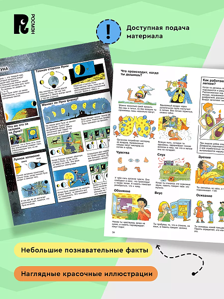 Книга расскажет ребенку много интересных фактов из разных областей знаний: наша планета, страны и эпохах, история человечества, физиология и строение тела, достижения науки и техники.