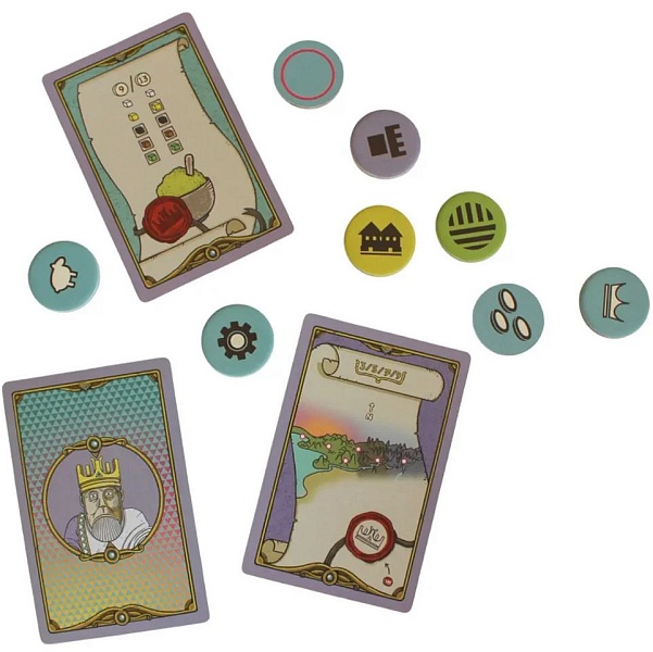 А королевство растёт, и дополнения расширяют игру! "Альтер эго" добавляет маркер эпохи полётов, 36 альтернативных карт действий, открывая свежие стратегии. "Армия королевы" приносит 50 карт действий королевы, кубик судьбы, двух новых подданных и коня.