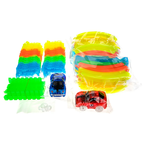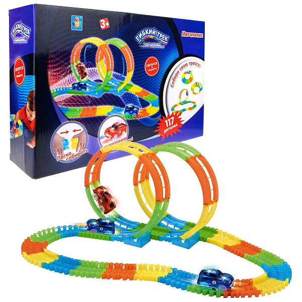 Гибкий трек - Мегаполис, 2 петли, дорога светится, 1 машинка со светом, 117 деталей Т13198