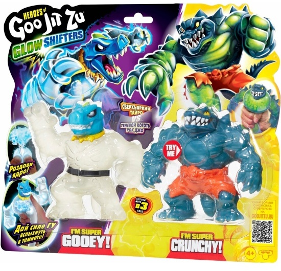 Приготовься к мощному экшену! Герои Гуджитсу в серии Глоу Шифтерс начеку, ведь предстоит новая эпичная битва в темноте. Игровой набор "Свирепый Коготь" с двумя эксклюзивными персонажами: Сверхъяркий Тайро и Теневой коготь Рок Джо. Каждый из них может растягиваться в 3 раза и легко принимать свою первоначальную форму.