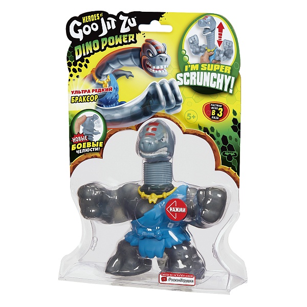 Тянущаяся фигурка Браксор ТМ Гуджитсу серии Дино Пауэр приятна на ощупь, растягивается в 3 раза.