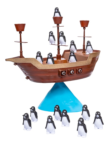 Игрок должен посадить пингвина на корабль так, чтобы не нарушить равновесие.