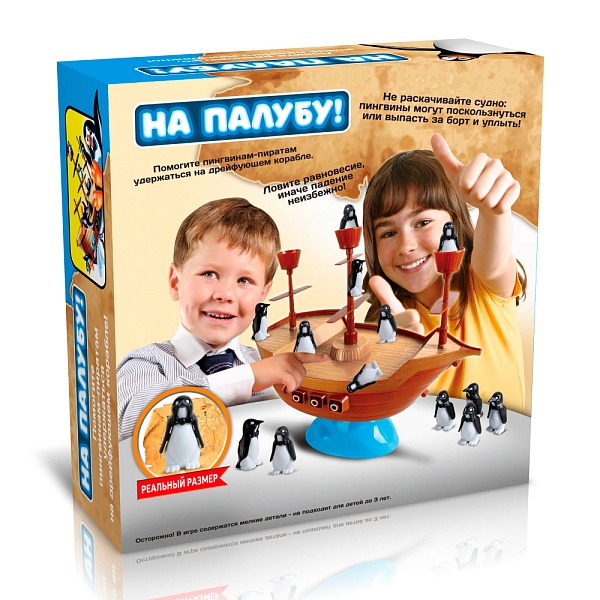 Настольная игра для детей «На палубу» - игра на равновесие. Помогите пингвинам-пиратам удержаться на дрейфующем корабле!