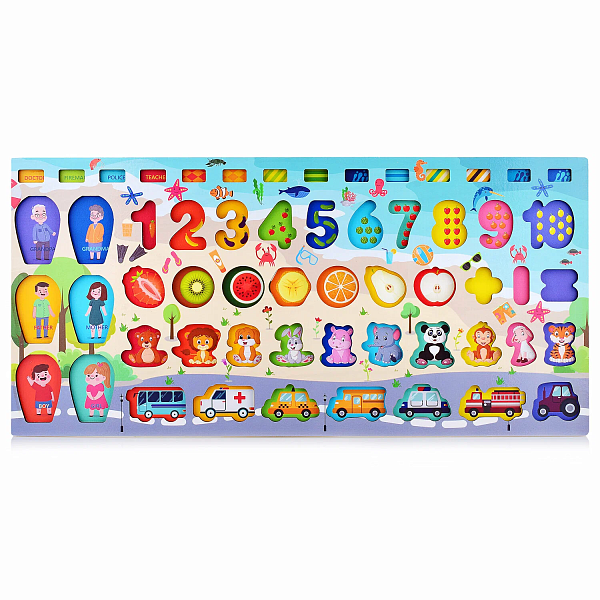 Отличный подарок детям в возрасте от 3 до 6 лет. Благодаря игре ребенок развивает мелкую моторику рук, учится считать и сортировать детали. Яркие элементы помогают тренировать память и внимание малыша в игровой форме. Натуральные материалы игры безопасны для ребенка. Игровое поле выполнено из натурального дерева. 100%. Нетоксичная краска, без "заусенцев", отсутствие острых краев и углов на каждом блоке, безопасные складные сортировочные игрушки для детей, чтобы играть.