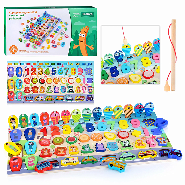 Игра развивающая Сортер-Вкладыш MAXI с магнитной рыбалкой D1163