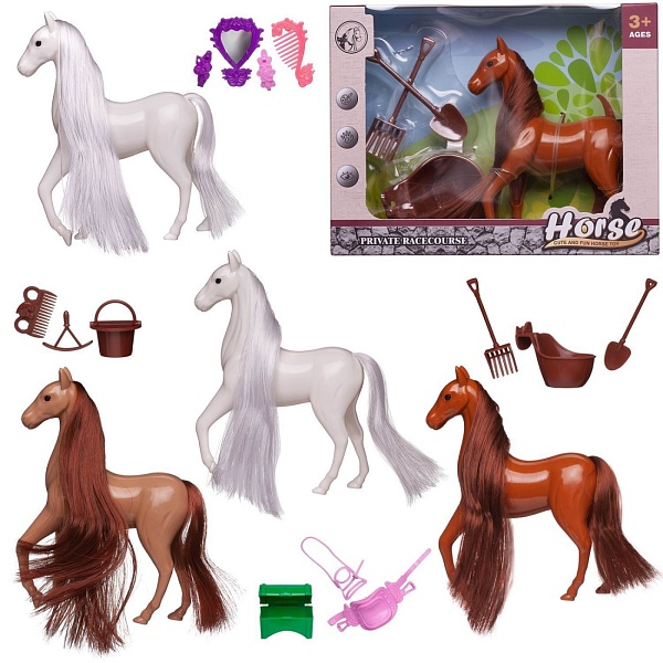 Лошадка - любимая игрушка всех девочек, ведь она такая красивая и добрая, с ней так интересно играть! Игровой набор с фигуркой лошадки и предметами ухода за ней от бренда Junfa может стать замечательным дополнением к коллекции игрушечных животных малышки. Девочка будет ухаживать за своей любимой лошадкой, используя предметы ухода, входящие в состав набора. Фигурка является максимально приближенной копией настоящей лошади. Такая очаровательная лошадка идеально впишется в любую сюжетно-ролевую или тематическую игру девочки.