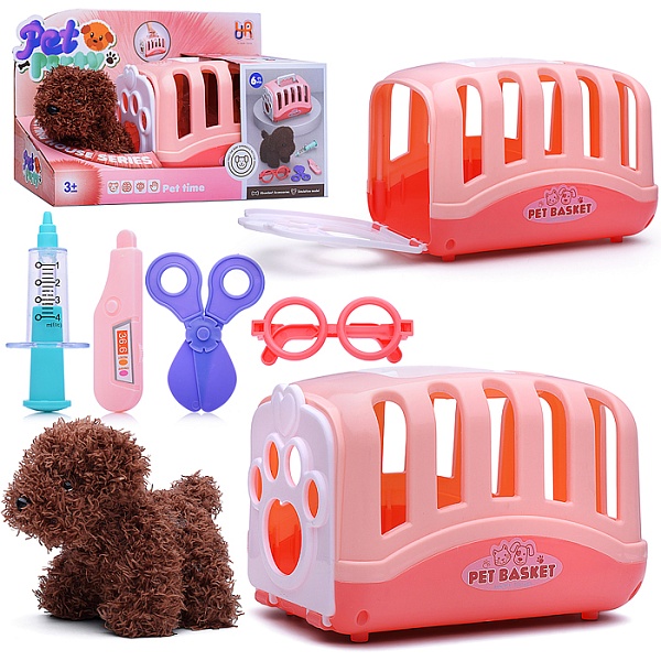 Игровой набор "Ветеринар" с коричневой собачкой в переноске R-08