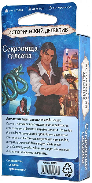 Атлантика, 1715 год. Испанский галеон неспешно рассекает волны, а потомок знаменитого завоевателя Серхио Корте потирает руки в предвкушении славы. И повод для радости у него, действительно, весомый – на борту корабля полным полно золота, а долгожданный берег уже виднеется на горизонте. Но за два дня до прибытия всё идёт ко дну (не буквально, конечно), когда сокровища исчезают прямиком из капитанской каюты! Ни следов, ни шума, ни единой зацепки – будто шальная волна просто смыла добычу за борт. Сумеете ли вы отличить правду от лжи и вычислить похитителя? Только сделать это надо быстро, пока корабль не бросил якорь в порту, а преступник не растворился в толпе на суше…