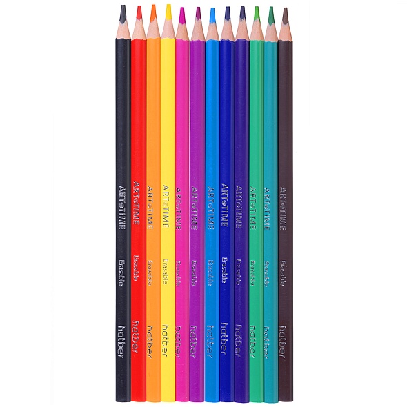 Карандаши цветные стираемые пластиковые Hatber трехгран.корпус 12 цв.-ART-TIME 085920