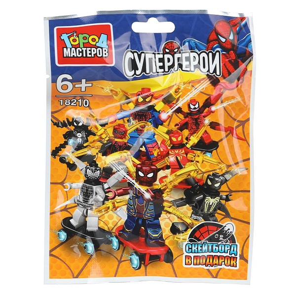 Конструктор фигурки спайдермен на скейте в пакетах 406340