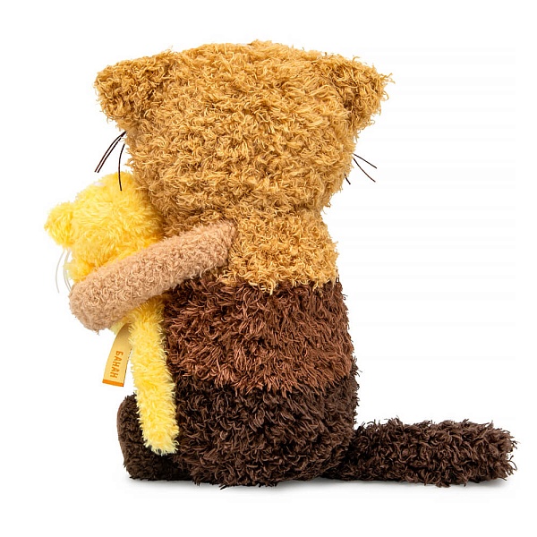 Шикарный кофейный кот Фраппе из тактильно приятного эко меха в трёх оттенках: цвета горького шоколада, цвета золотистой карамели и белоснежного цвета молочной пенки. У кота есть дружок – сиропчик-котёнок Банан. Ведь так вкуснее! Котик Фраппе трогательно держит в лапках малыша Банана, сшитого из эко меха цвета спелого банана.