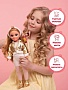 Рост куклы 42 см. Милые выразительные глаза с пушистыми ресницами. Цвет глаз может варьироваться. Ручки и голова выполнены из эластичного, приятного на ощупь винила, а туловище и ноги из пластмассы. Продуманная конструкция куклы позволяет её сажать, ставить на ножки, переодевать. Прекрасные прошитые волосы из качественного нейлона, похожие на натуральные, можно завивать, расчёсывать, укладывать в разные причёски, меняя образ куклы.