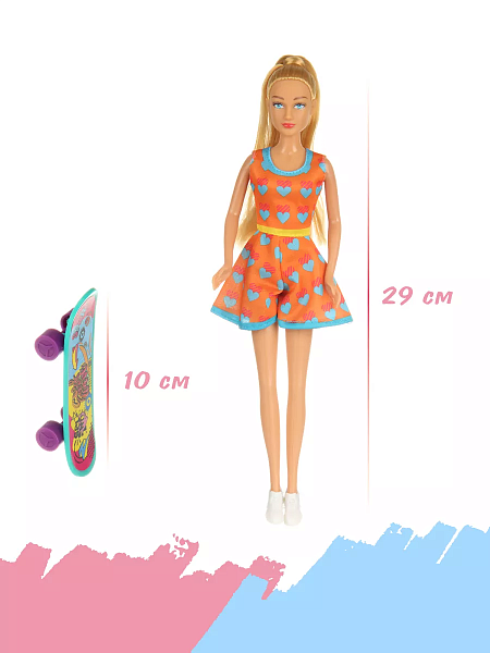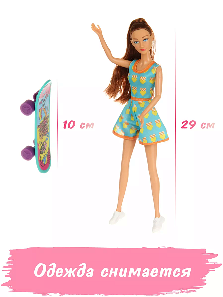Стильная кукла с современным образом, которая станет идеальной подругой для активных и творческих игр! В набор входят модные аксессуары — наушники, скейт и сменные кроссовки, позволяющие создавать разнообразные сюжеты для прогулок, спорта и отдыха.