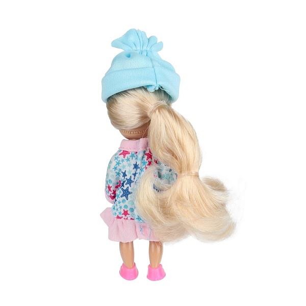 Очаровательная куколка Аня предстаёт в образе спортсменки-лыжницы. Она одета в милый наряд с принтом в виде звёздочек и тёплую шапочку голубого цвета. У Анечки длинные красивые волосы, которые хозяйка куклы сможет заплетать в разные причёски. Для более интересной игры с куклой в наборе предусмотрены дополнительные аксессуары.