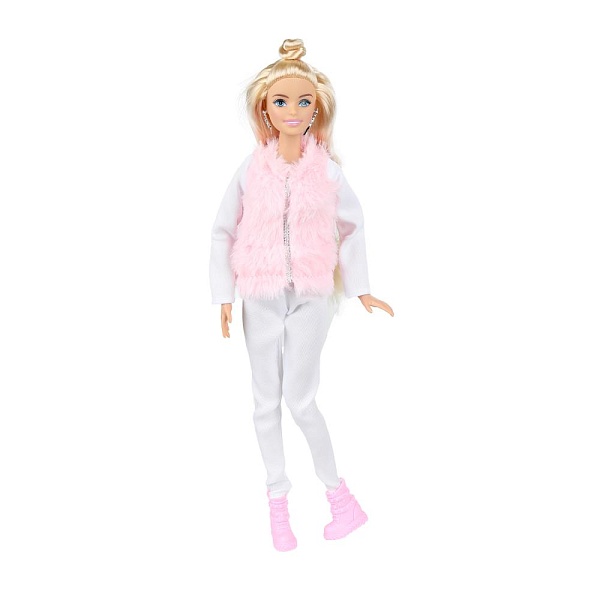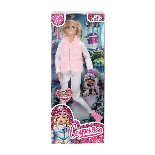 Модница София одета в белую куртку с розовым мехом и светлые брючки, на ногах – стильные розовые сапожки. Образ дополняют крупные серьги. Одежда и аксессуары легко снимаются и надеваются. С такой модной куклой девочке будет интересно и весело играть: благодаря тому, что руки и ноги куклы подвижны, им можно придать любое положение. У Софии длинные красивые волосы, которая хозяйка куклы сможет собирать в разные причёски. Детально проработанный дизайн игрушки вдохновит девочку на множество интересных игровых сюжетов.