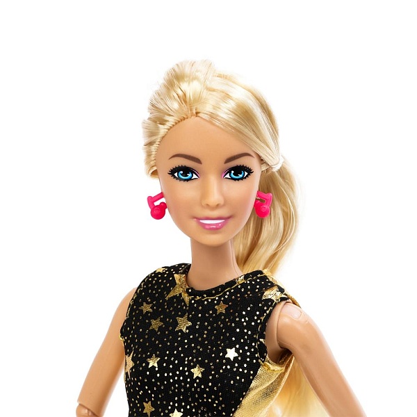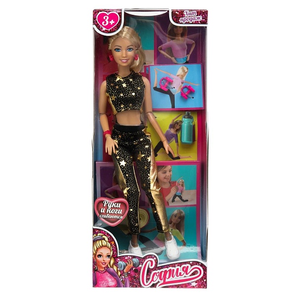 Модница София одета в чёрный спортивный костюм с золотыми звёздами. Образ дополняют яркие серьги, стильные часы и белые кроссовки. Одежду и аксессуары легко снять и надеть. С такой модной куклой девочке будет интересно и весело играть: благодаря тому, что руки и ноги куклы подвижны, им можно придать любое положение. У Софии светлые длинные волосы, которые хозяйка куклы сможет заплетать в разные причёски. Детально проработанный дизайн игрушки вдохновит девочку на новые игровые сюжеты.