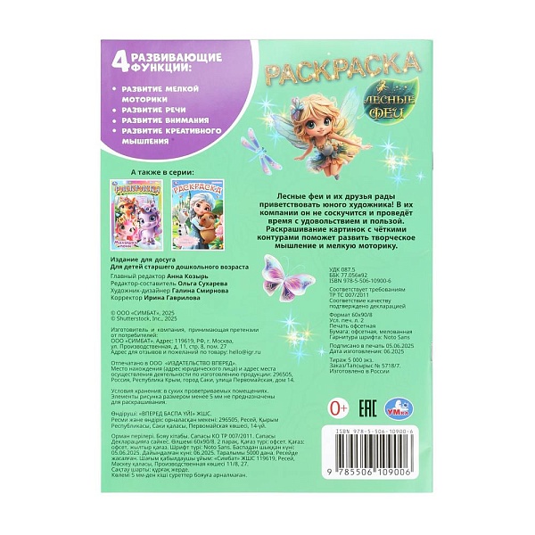 Раскраска «Лесные феи» ТМ «УМка» обязательно понравится юным художникам:
