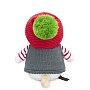 Очаровательная малышка Лиличка в очень уютном комплекте. На Ли-Ли вязаный из нежного акрила дымчато-серый жилет с вывязанным оленем спереди. К жилету пришиты рукава из плотного х/б трикотажа в бело-красную полоску. Также на Лиличке объёмная шапочка с завязками, сшитая из алого трикотажа с большим зелёным помпоном из пряжи.