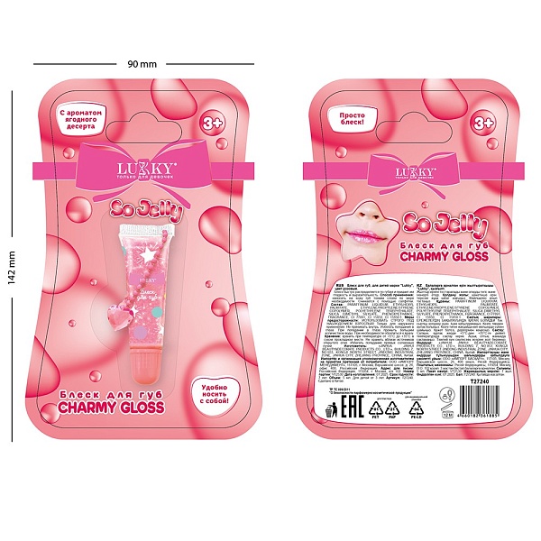 Блеск для губ сверкающий карамель.,5мл,с ароматом ягодного десерта,браслетик с подвеской Т27240 Lukky