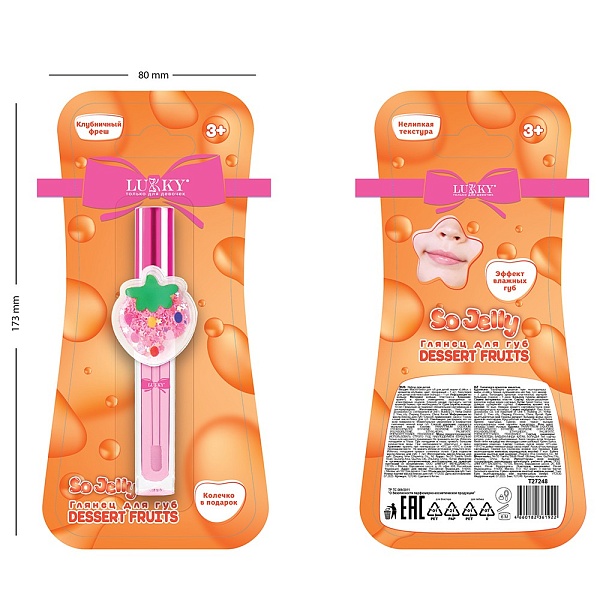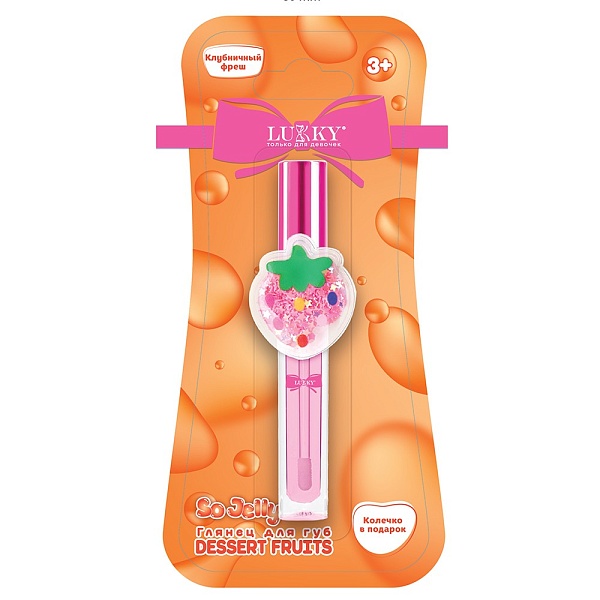 Lukky Dessert Fruits, глянец для губ клубничный, с колечком Т27248