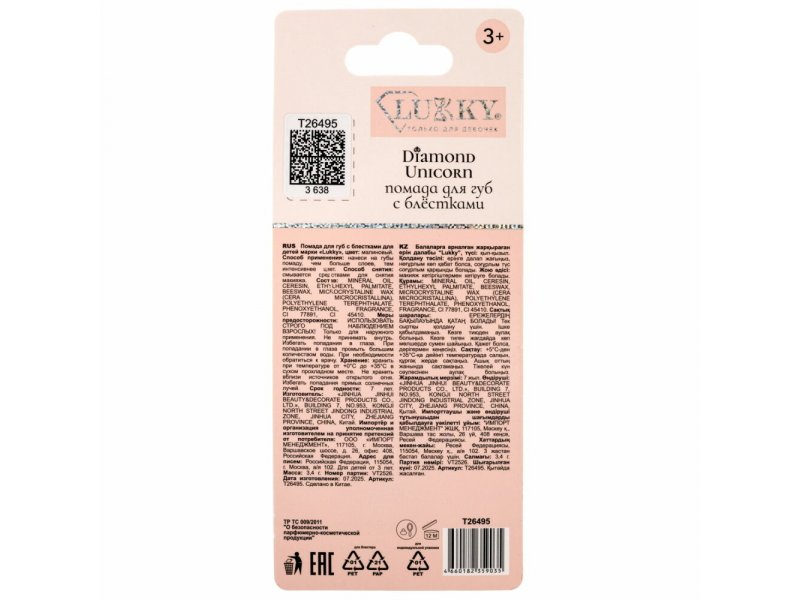 Помада Lukky Diamond Unicorn разработана специально для детей — она безопасна, приятно пахнет и легко наносится. Лёгкая текстура с блёстками подчёркивает естественный цвет губ и добавляет сияющий эффект, не создавая ощущения липкости. Оттенки Diamond Unicorn подойдут для игр, праздников или просто хорошего настроения. Нежный аромат делает использование особенно приятным и запоминающимся. Формат стика удобно ложится в детскую руку, а плотный колпачок надёжно защищает содержимое в косметичке или рюкзаке. Подходит для ежедневного использования и первых шагов в мире красоты.
