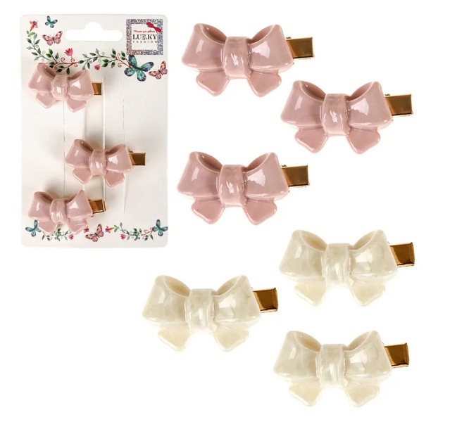 Lukky Fashion набор из 3 заколок-зажимов Бантик мини глянцевый, 2 цвета в ассортименте: молочный, какао микс.