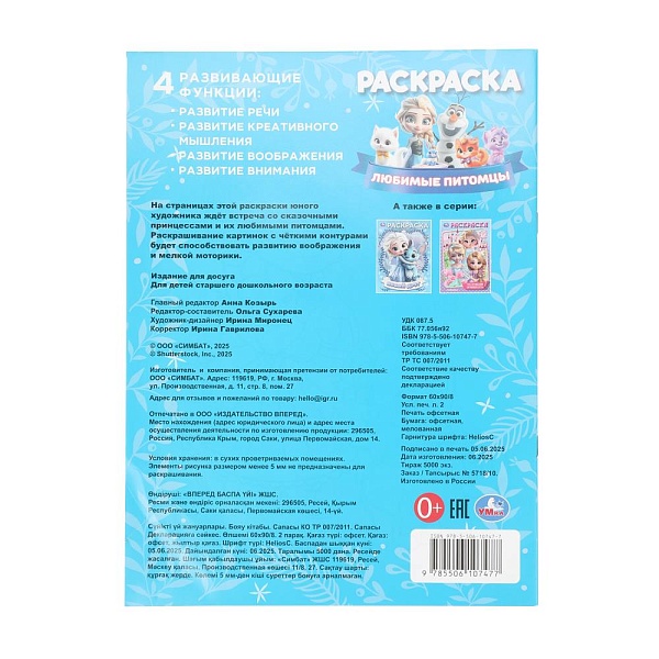 Эта занимательная раскраска про очаровательную снежную принцессу и её милых пушистых питомцев не только скрасит досуг ребёнка, но и поможет потренировать руку к письму. Внутри детей ожидают интересные картинки с чётким контуром и сюжетные тексты к ним. Благодаря удобному формату раскраску можно взять с собой в дорогу.