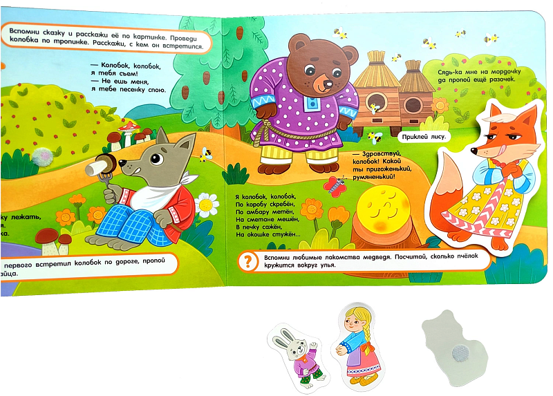 В этой книжке-игрушке содержатся не только игры на липучках, но и дополнительные задания для развития интеллекта малыша. Занимаясь вместе со взрослым, ребенок вспомнит любимые сказки, сможет пересказать их по картинке и даже поиграть в кукольный театр с героями-липучками!