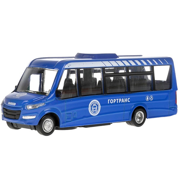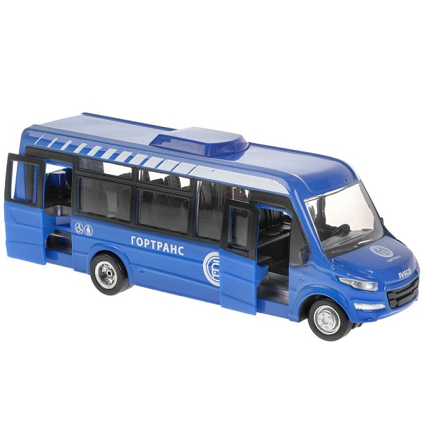 Машина металл свет-звук АВТОБУС IVECO DAILY 15 см, двери, СИНИЙ 306896
