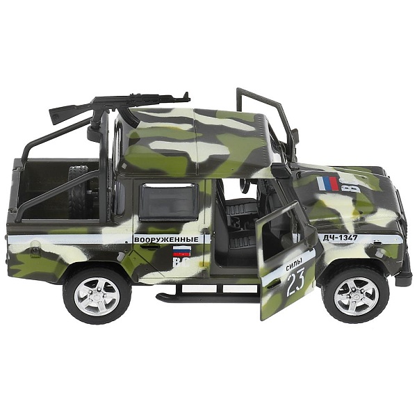Металлическая модель, выполненная с учётом всех особенностей прототипа, обязательно понравится вашему ребёнку. Благодаря открывающимся дверям, которые делают машинку максимально похожей на настоящую, всегда можно заглянуть к ней внутрь, чтобы убедиться - каждая деталь отлично проработана. Реалистичный дизайн данной модели плюс световые и звуковые эффекты позволят с головой погрузиться в игру, придумывая новые интересные сюжеты. Кроме того, эта игрушка познакомит малыша с видами военной техники и марками автомобилей.