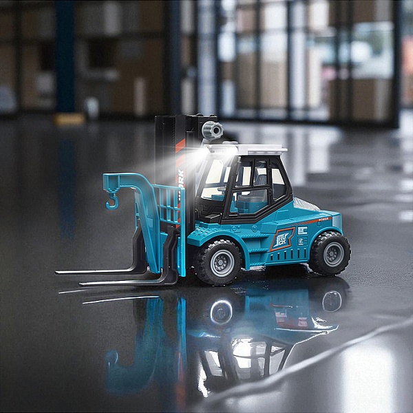 Световые и звуковые эффекты: На крыше погрузчика расположены кнопки, активирующие реалистичные сигналы и подсветку. Звуки мотора и сигналы создают атмосферу настоящей рабочей площадки.