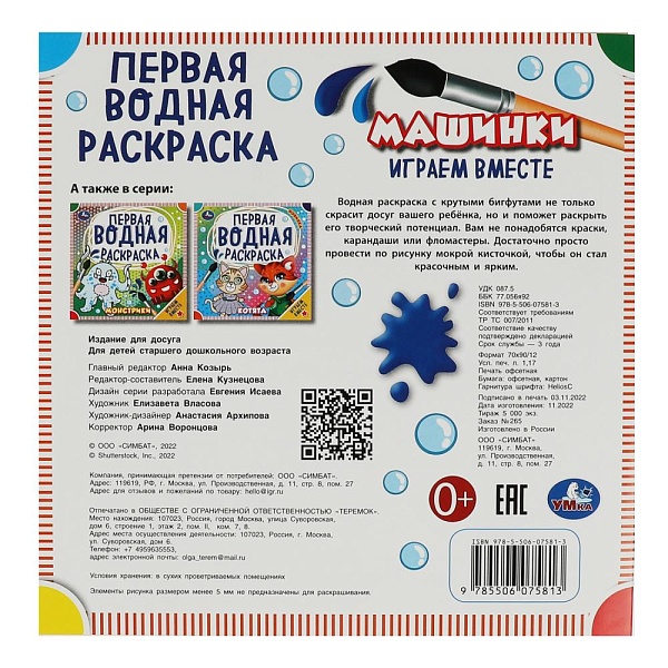 Первая водная раскраска «Машинки» ТМ «УМка» обязательно понравится маленькому художнику: