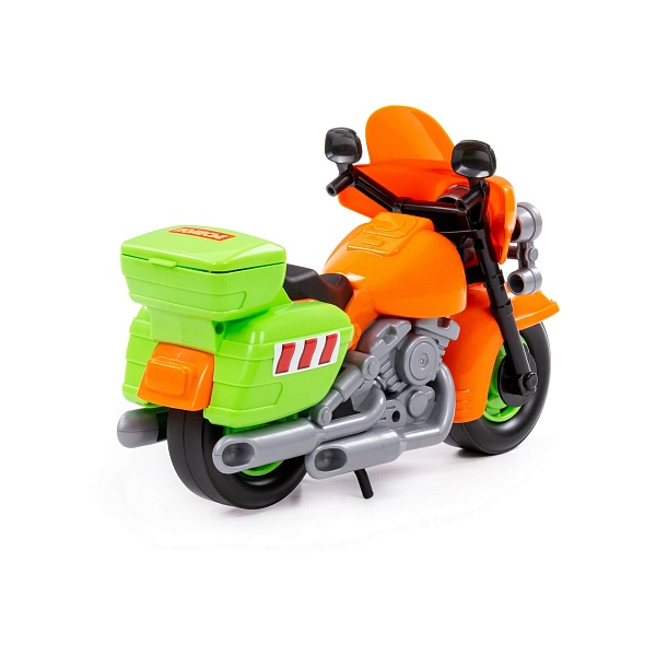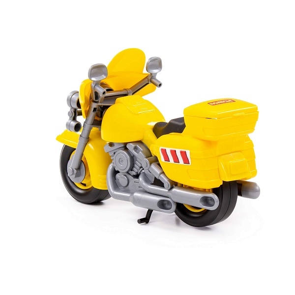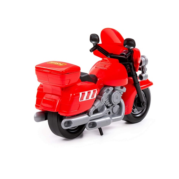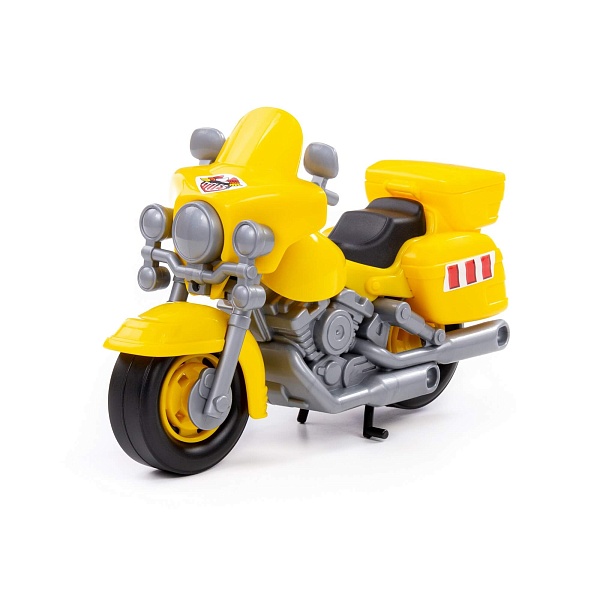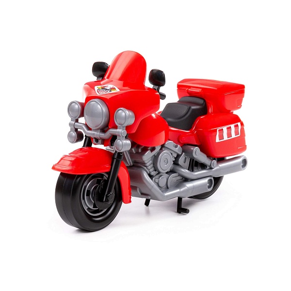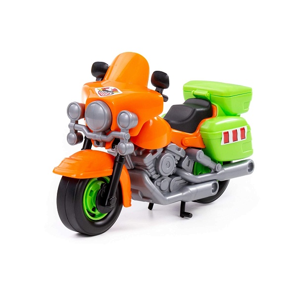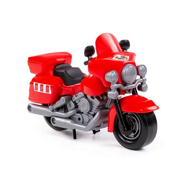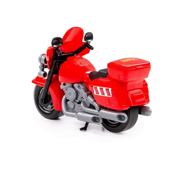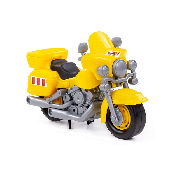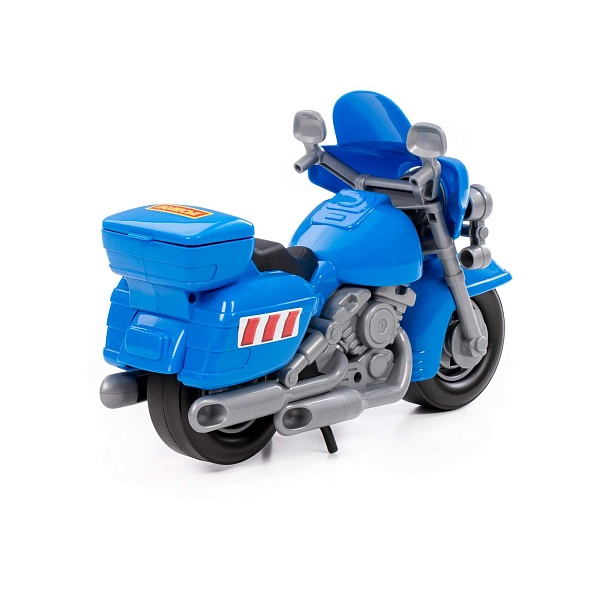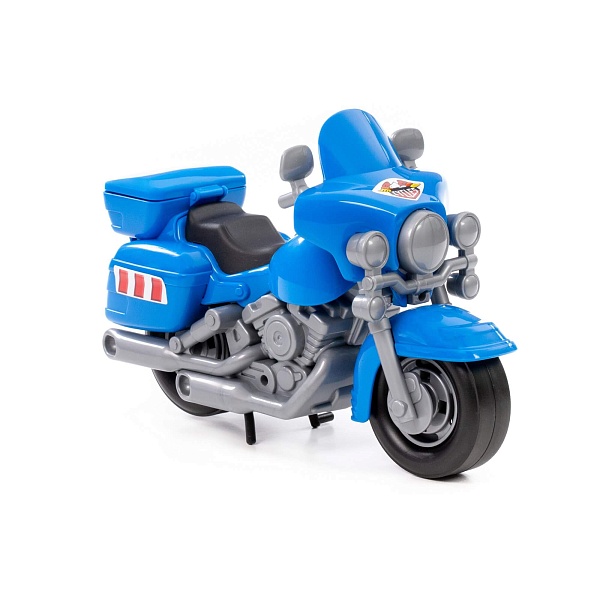 В игрушечном автопарке должно быть место не только для автомобилей, но и для мотоциклов! Фабрика «Полесье» предлагает поиграть миниатюрными моделями байков. Игрушка особенно будет интересна для маленьких лихачей. Дизайн мотоцикла полицейского «Харлей» выполнен максимально правдоподобно. Его можно использовать в качестве средства передвижения игрушечного героя. Руль байка поворачивается, имеются выдвижные/задвижные подножки, крышка багажника открывается. Таким образом, дети знакомятся с разными видами транспорта и находят в них отличия.