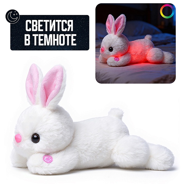 Мягкая игрушка "Заяц" светится в темноте 35 см. М1518