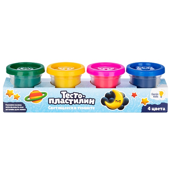 Набор для лепки Genio Kids: "Тесто-пластилин. Светящееся в темноте" (4 цвета)