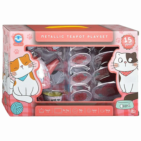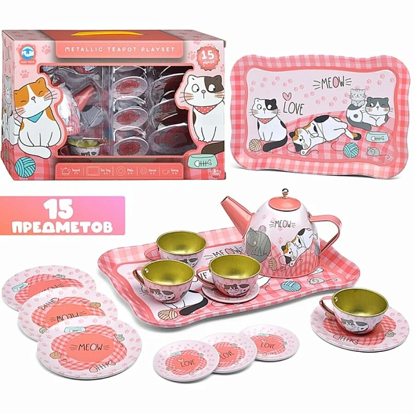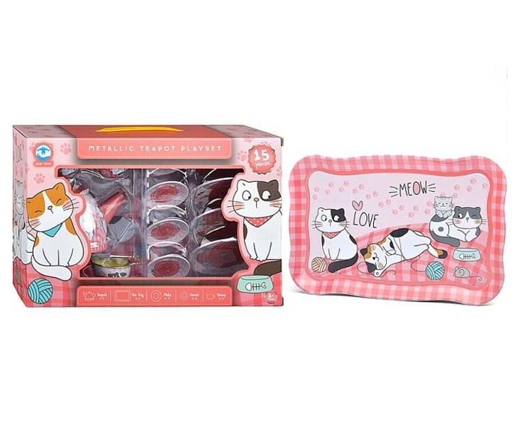 Игровой набор посуды Милые котики создан для веселых ролевых игр и станет отличным подарком для ребенка. Яркий дизайн с милыми котиками привлекает внимание и делает чаепитие еще интереснее. В комплект входят чайник, чашки, тарелки и поднос — все, что нужно для организации настоящего кукольного чаепития. Металлические элементы набора прочные и безопасные, что гарантирует долговечность игрушки.