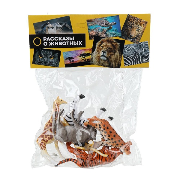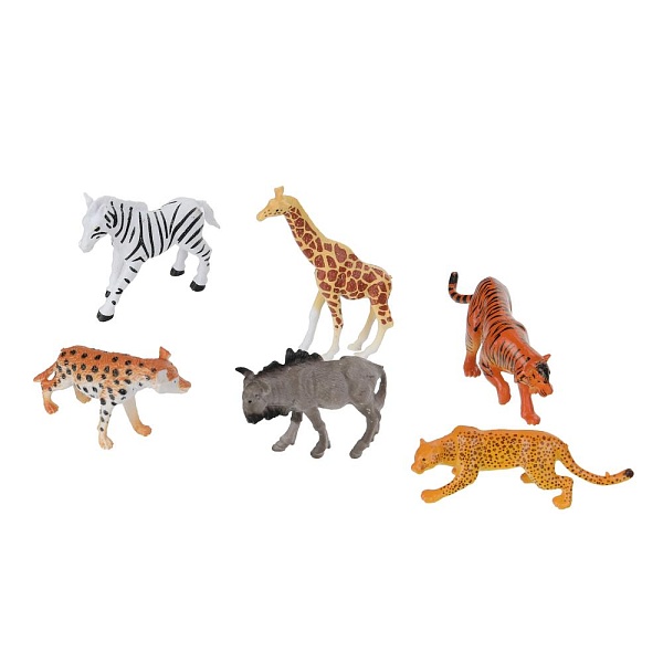 - 6 фигурок в комплекте: вол, тигр, зебра, гиена, жираф, гепард