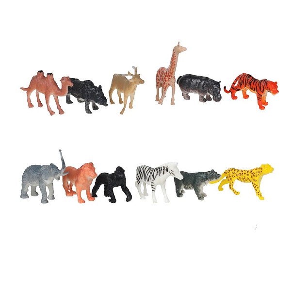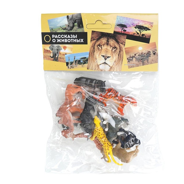 Игрушки серии «Рассказы о животных» – копии реальных рептилий, зверей, птиц и насекомых. Благодаря таким игрушкам можно легко и весело познакомить ребёнка с видами животных, их повадками и особенностями. Пластизолевыми игрушками можно играть на улице и в ванной, они легко моются. В набор «Животные Африки» входят: горилла – 4 см, лев – 5 см, чёрный медведь – 5 см, бегемот – 5 см, тигр – 5 см, зебра – 5 см, козёл – 5 см, верблюд – 5 см, жираф – 4,5 см, носорог – 5 см, слон – 6 см, ягуар – 6 см.