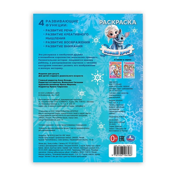 Эта увлекательная раскраска про снежную принцессу и её друга с необычной внешностью непременно понравится вашему ребёнку. В ней он найдёт интересные картинки с чёткими контурами и сюжетными текстами к ним. Благодаря удобному формату раскраску можно взять с собой в путешествие.