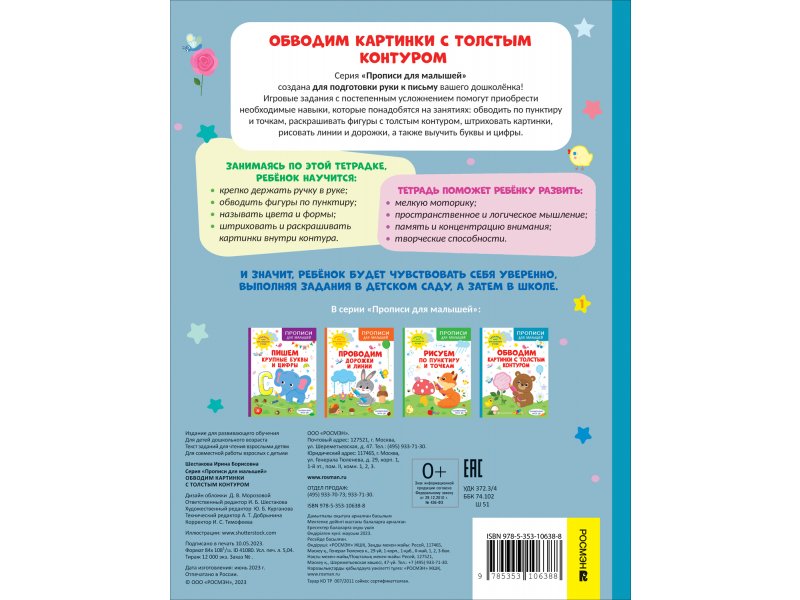 Серия «Прописи для малышей» создана для подготовки руки к письму вашего дошколёнка! Игровые задания с постепенным усложнением помогут приобрести необходимые навыки, которые понадобятся на занятиях: обводить по пунктиру и точкам, раскрашивать фигуры с толстым контуром, штриховать картинки, рисовать линии и дорожки, а также выучить буквы и цифры.