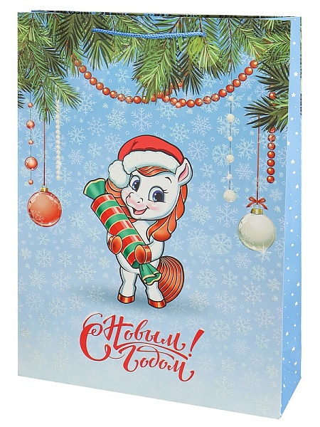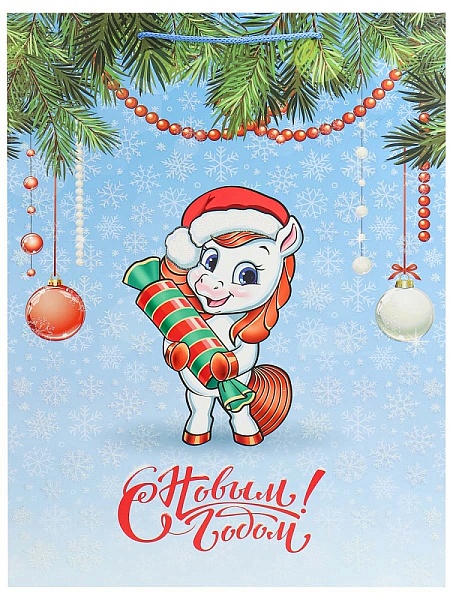 Пакет подар. мат.лам.глит 32,4х44,5х10,2см Лошадка с конфетой,190г ППК-2429