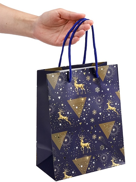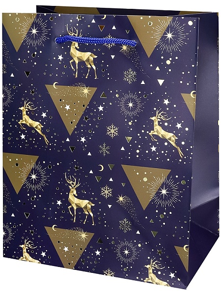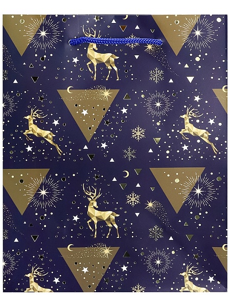 Пакет подар. с мат.лам. и тис.фол.18х23х10 см Золотистые олени ППК-2291