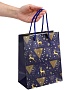 Подарочный пакет идеально подойдет для эксклюзивной упаковки любого подарка! Интересный дизайн усилит приятное впечатление от презента. Пакет с матовой ламинацией и тиснением фольгой. Хорошо держит форму. Плотность: 190 гр. Размер: 18х23х10 см.