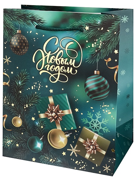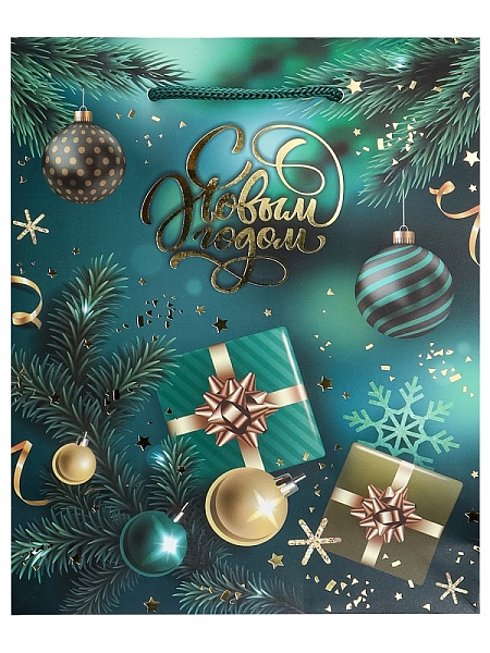 Пакет подарочный с мат.лам. и тис.фол..18х23х10 см Новогодние подарки, 190г ППК-2301