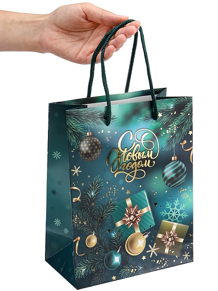 Подарочный пакет идеально подойдет для эксклюзивной упаковки любого подарка! Интересный дизайн усилит приятное впечатление от презента. Пакет с матовой ламинацией и тиснением фольгой. Хорошо держит форму. Плотность: 190 гр. Размер: 18х23х10 см.