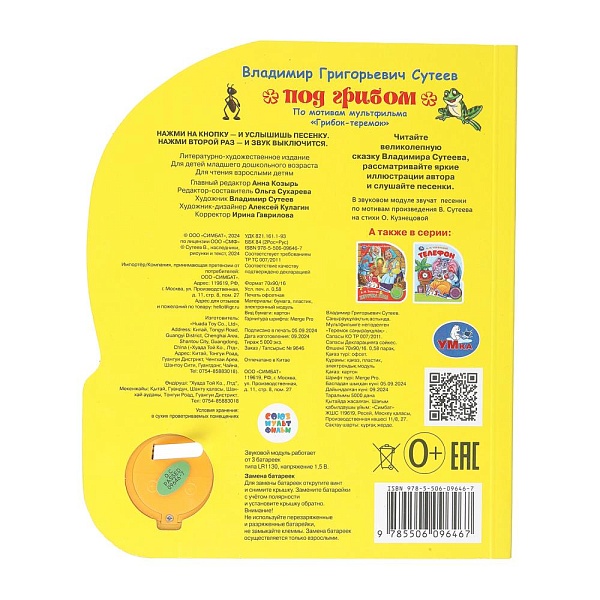 Музыкальная книга «В. Сутеев. Под грибом» ТМ «УМка» станет прекрасным подарком для малыша: